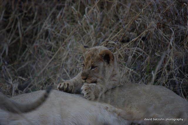 and this lion cub made sure that he did not stray too far from mom