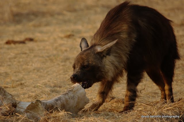 This young brown hyena was trying to drag this elephant leg bone away from our prying eyes…and failed.