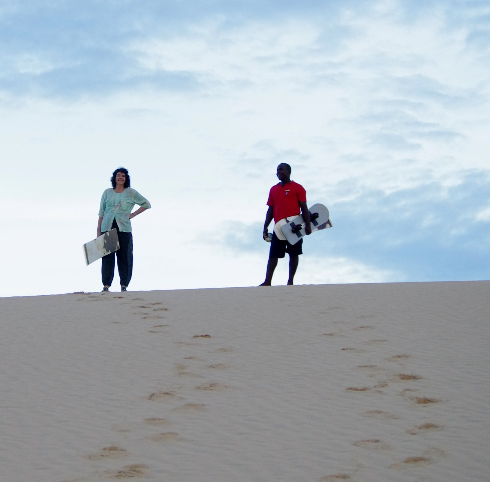 Together with our “boarding guide” James, they climb the dune