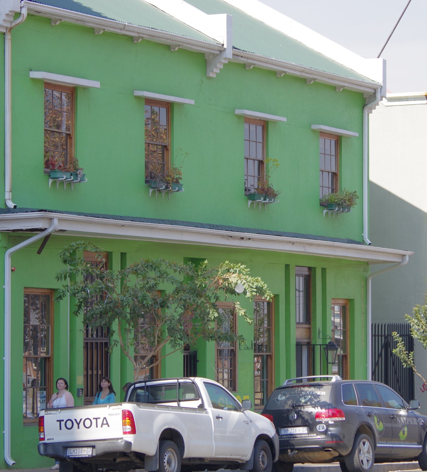 The lower part of Braamfontein is slowly being renovated as this bight green building in a sea of bland concrete proves.